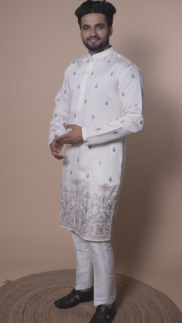 Artisan Kurta with Intricate Tree & Nature-Inspired Embroidery