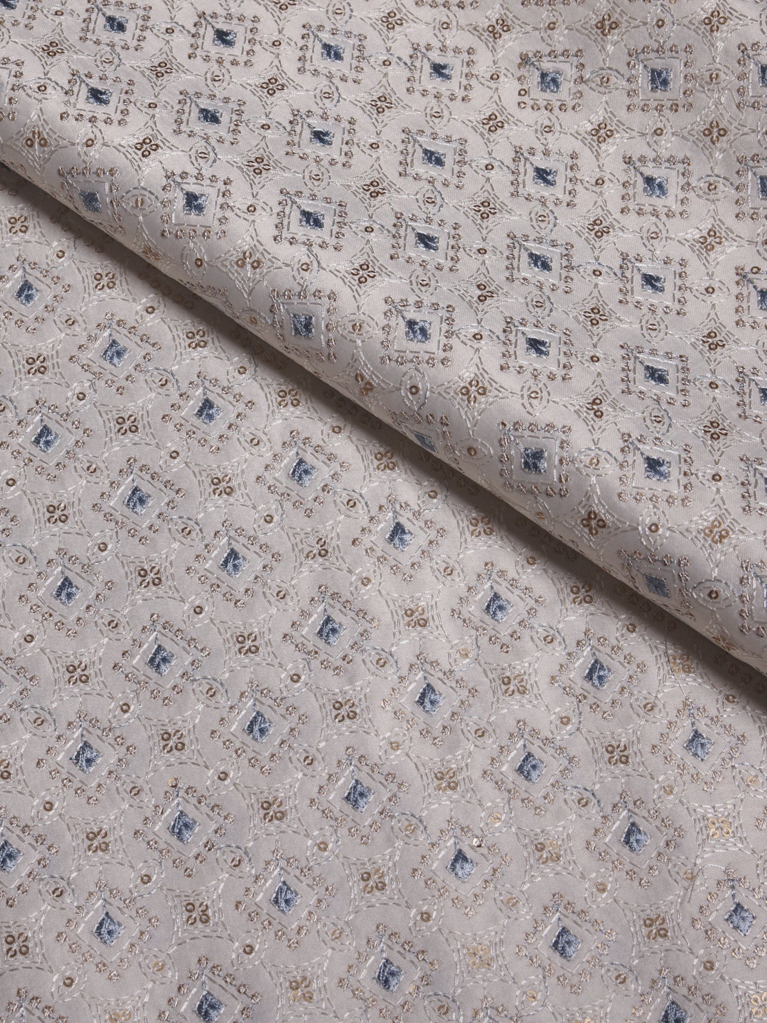 Diamond Embroidered Viscose Silk Fabric with Sequin Accents