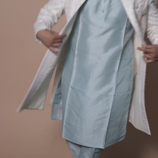 Design: Intricate Diamond Motifs with Silver Sequins and Pastel Green Accents
