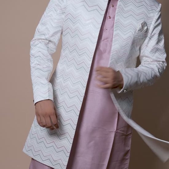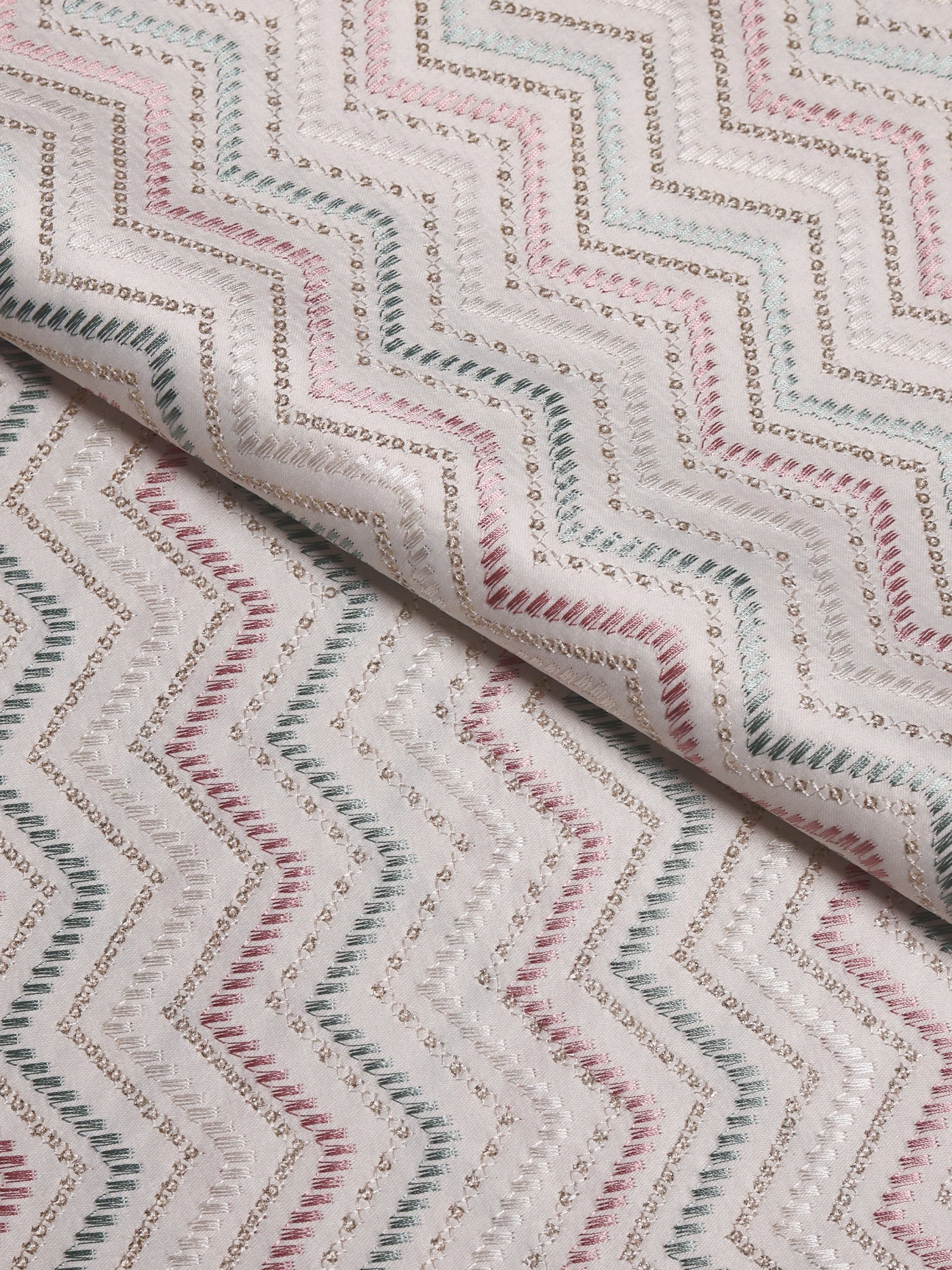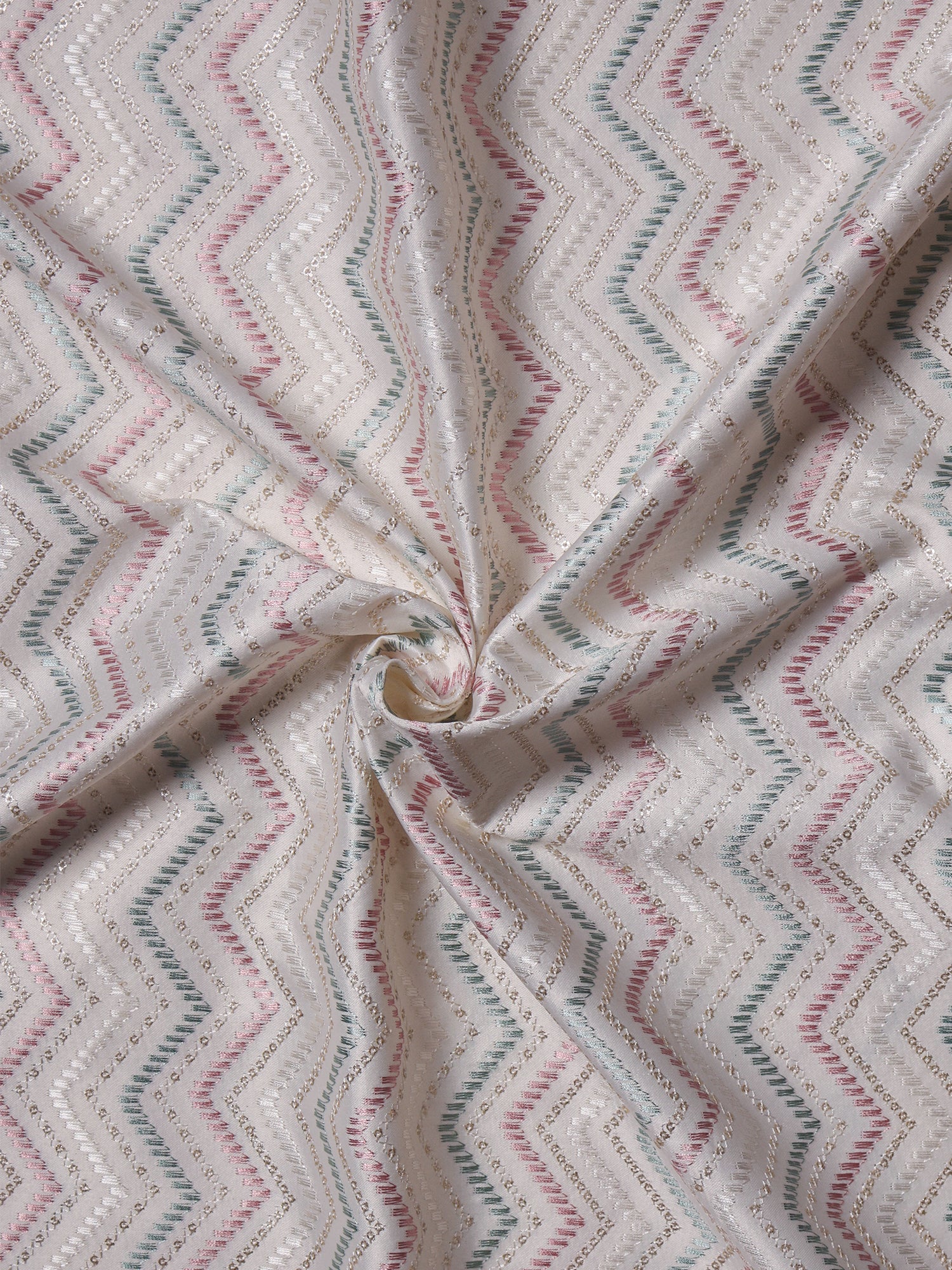 Elegant Zig-Zag Multicolor Embroidered Fabric on Silk