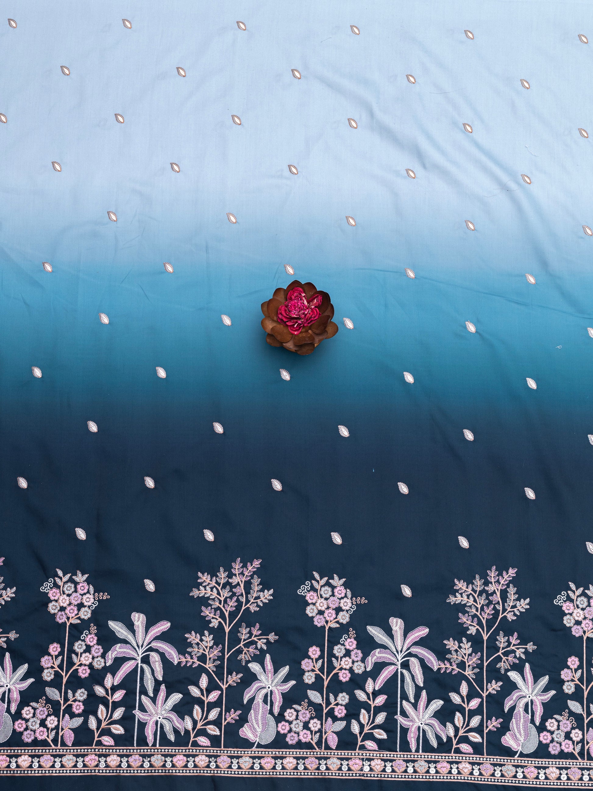 Texture: Silky, Smooth, Lightly Glossy with Textured Embroidery