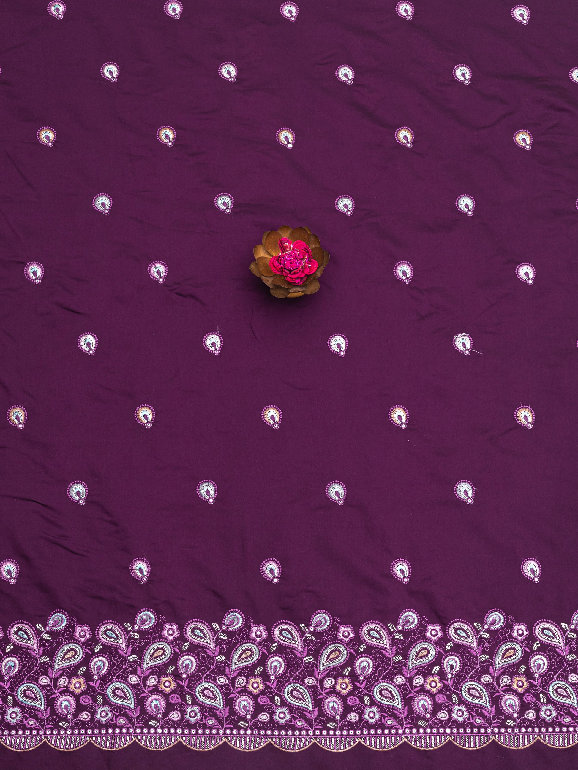 Texture: Silky, Smooth, Lightly Glossy with Textured Embroidery
