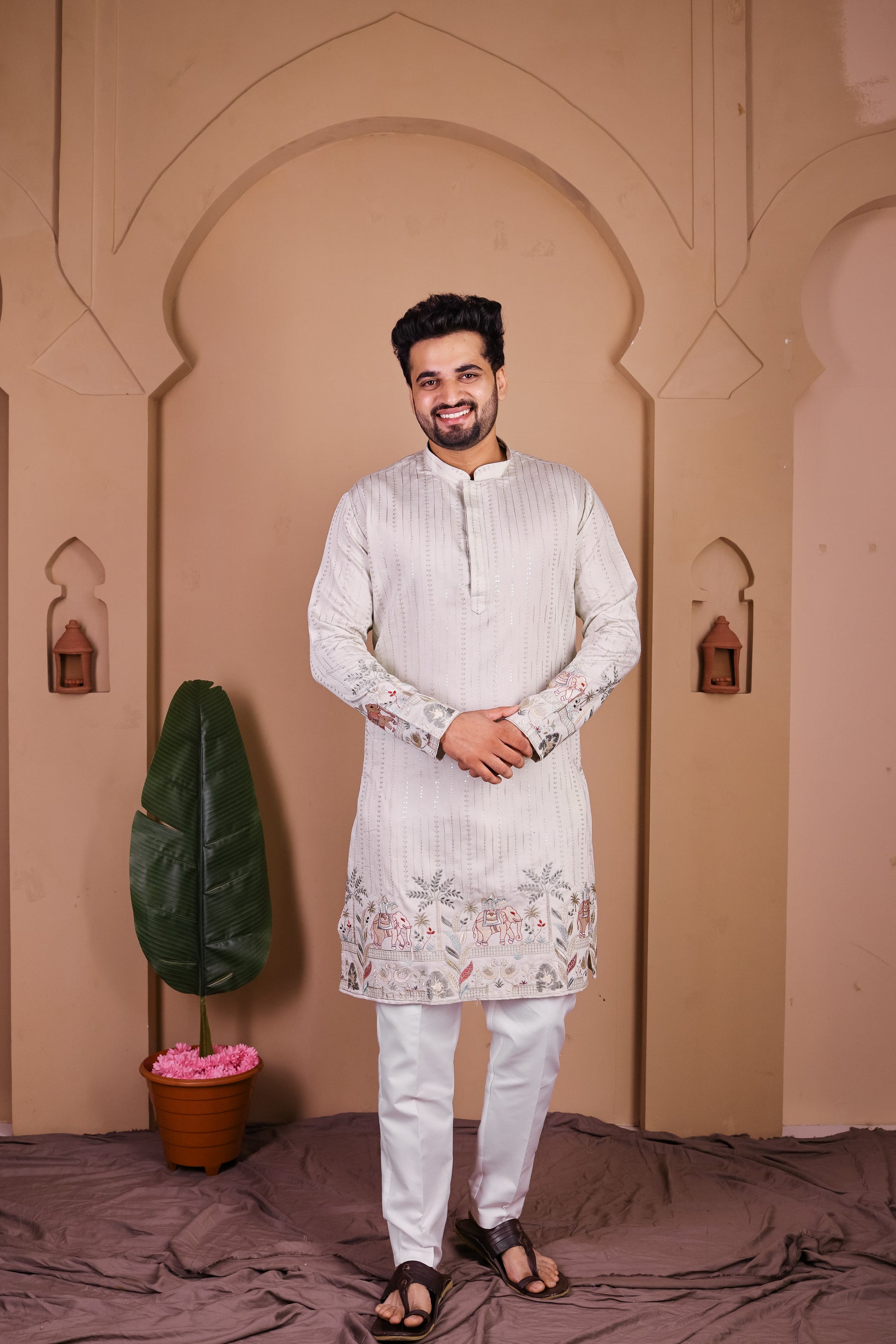 Design: Ivory Kurta with Zari and Elephant Motifs