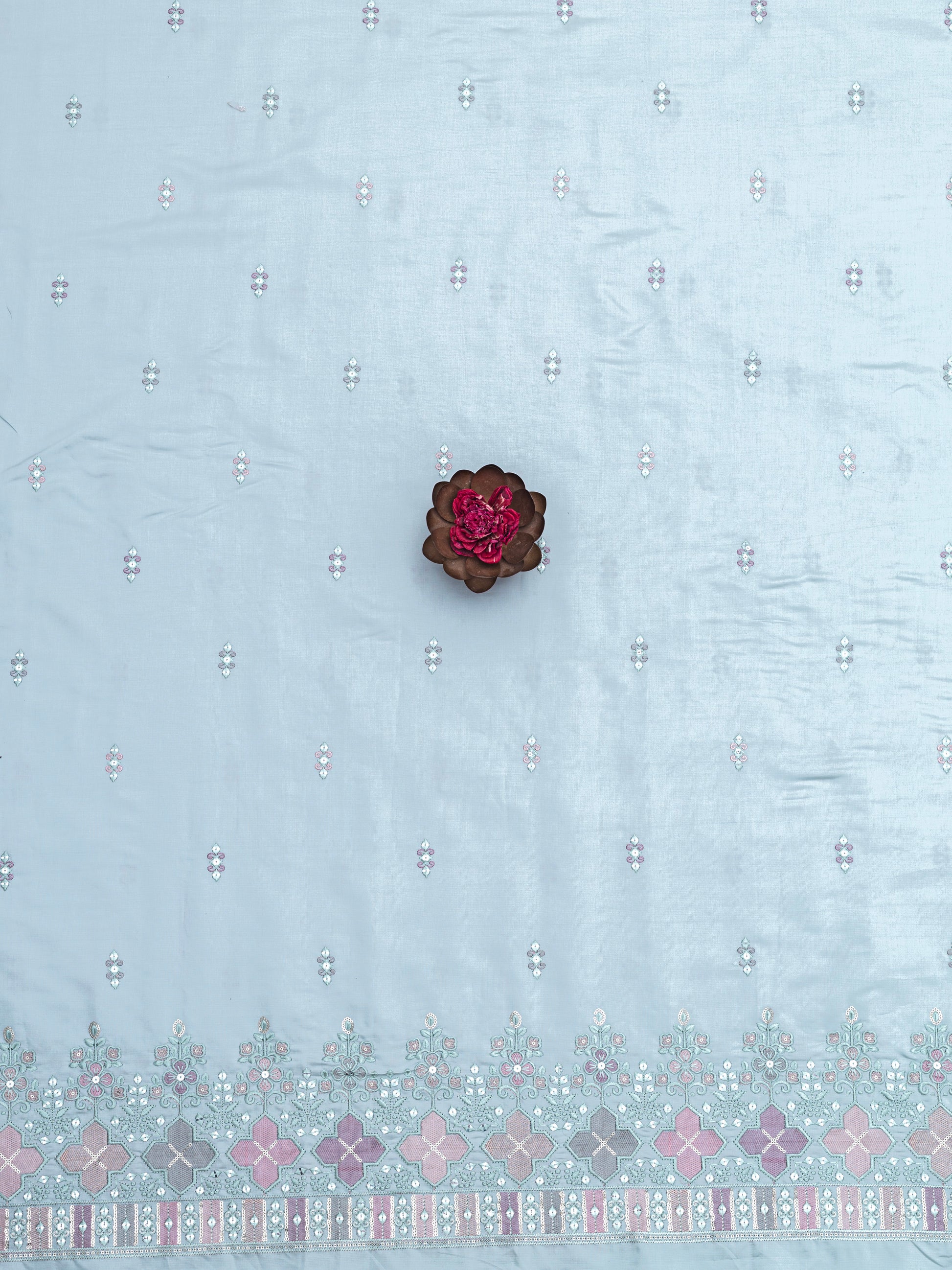 Texture: Silky, Smooth, Lightly Glossy with Textured Embroidery