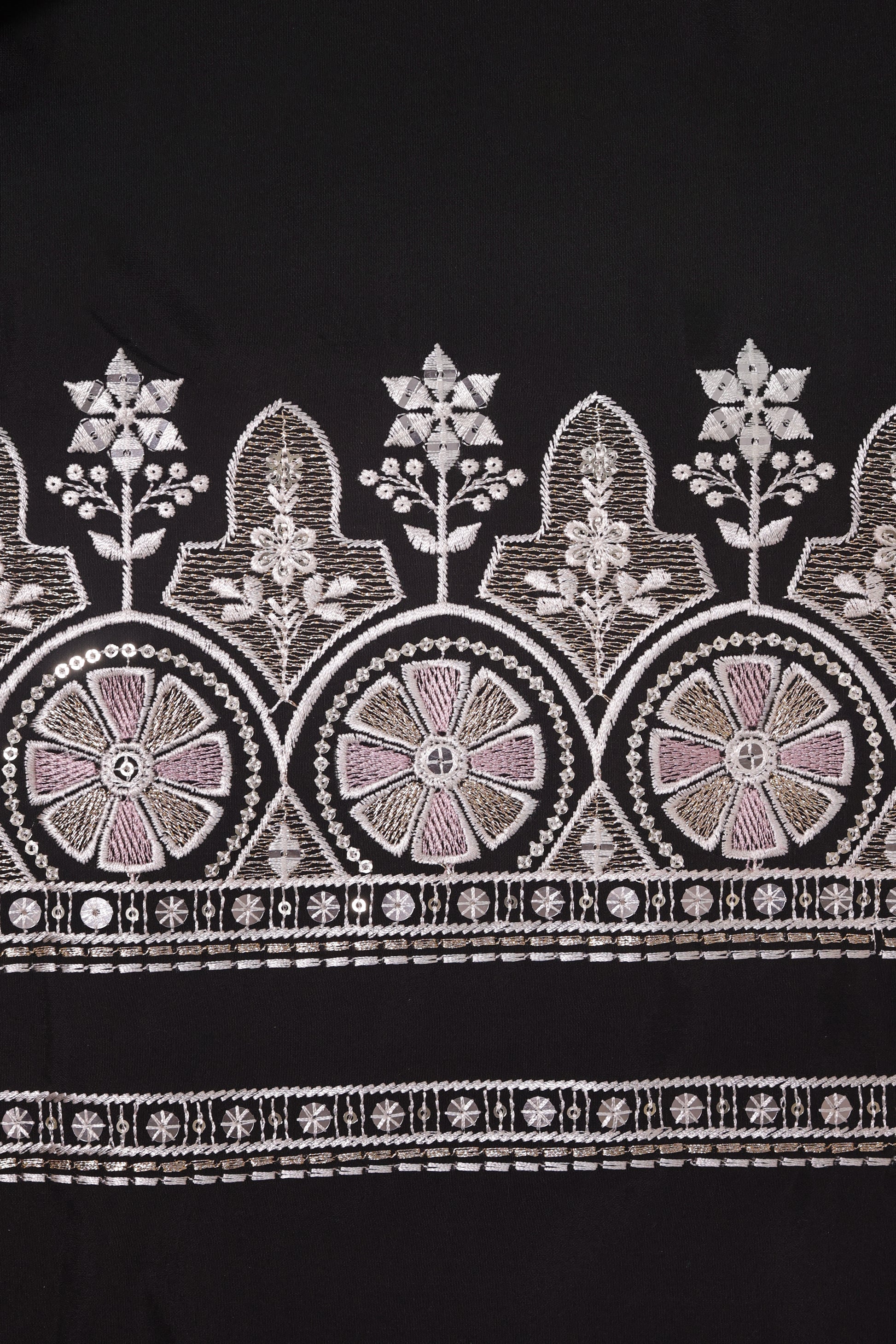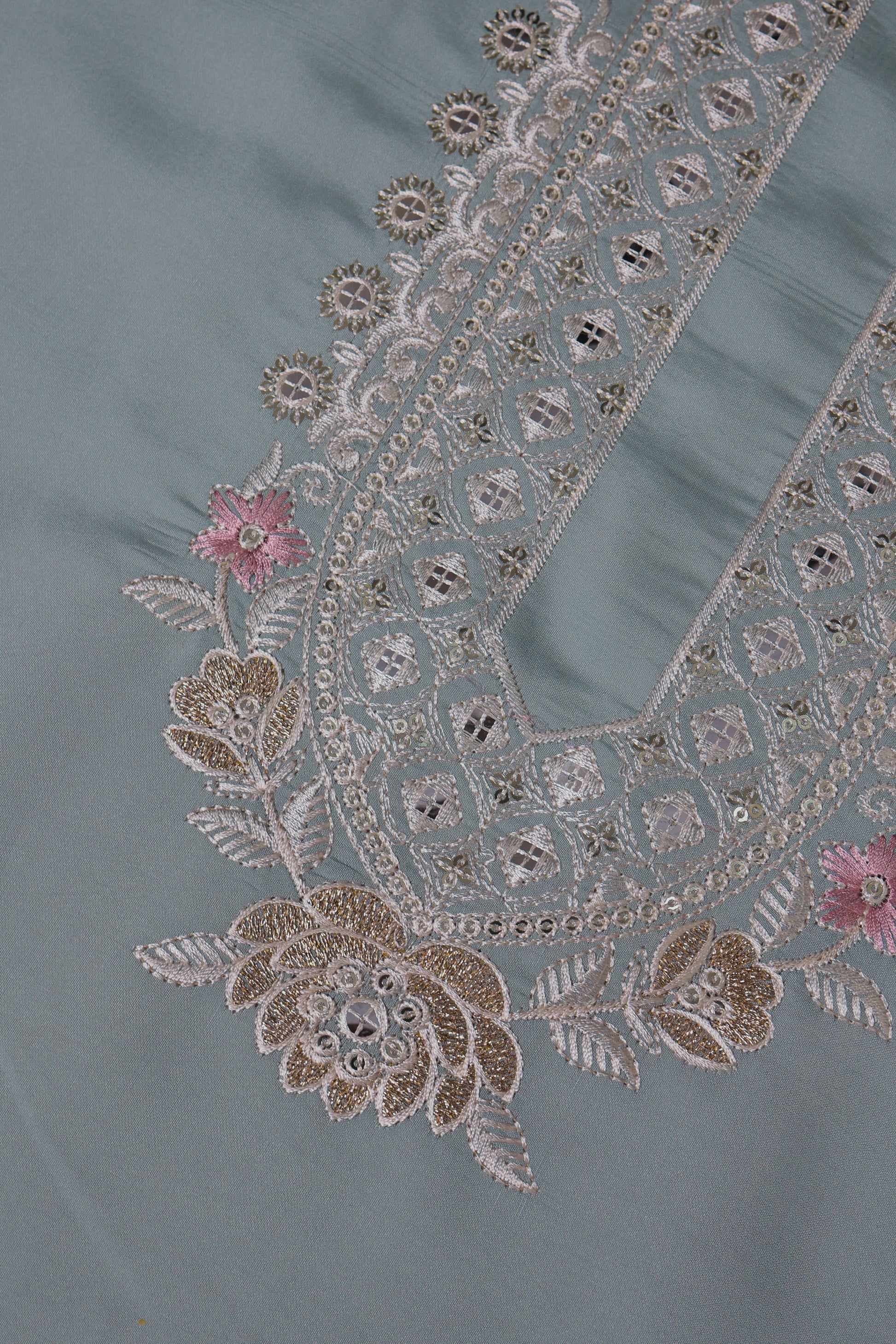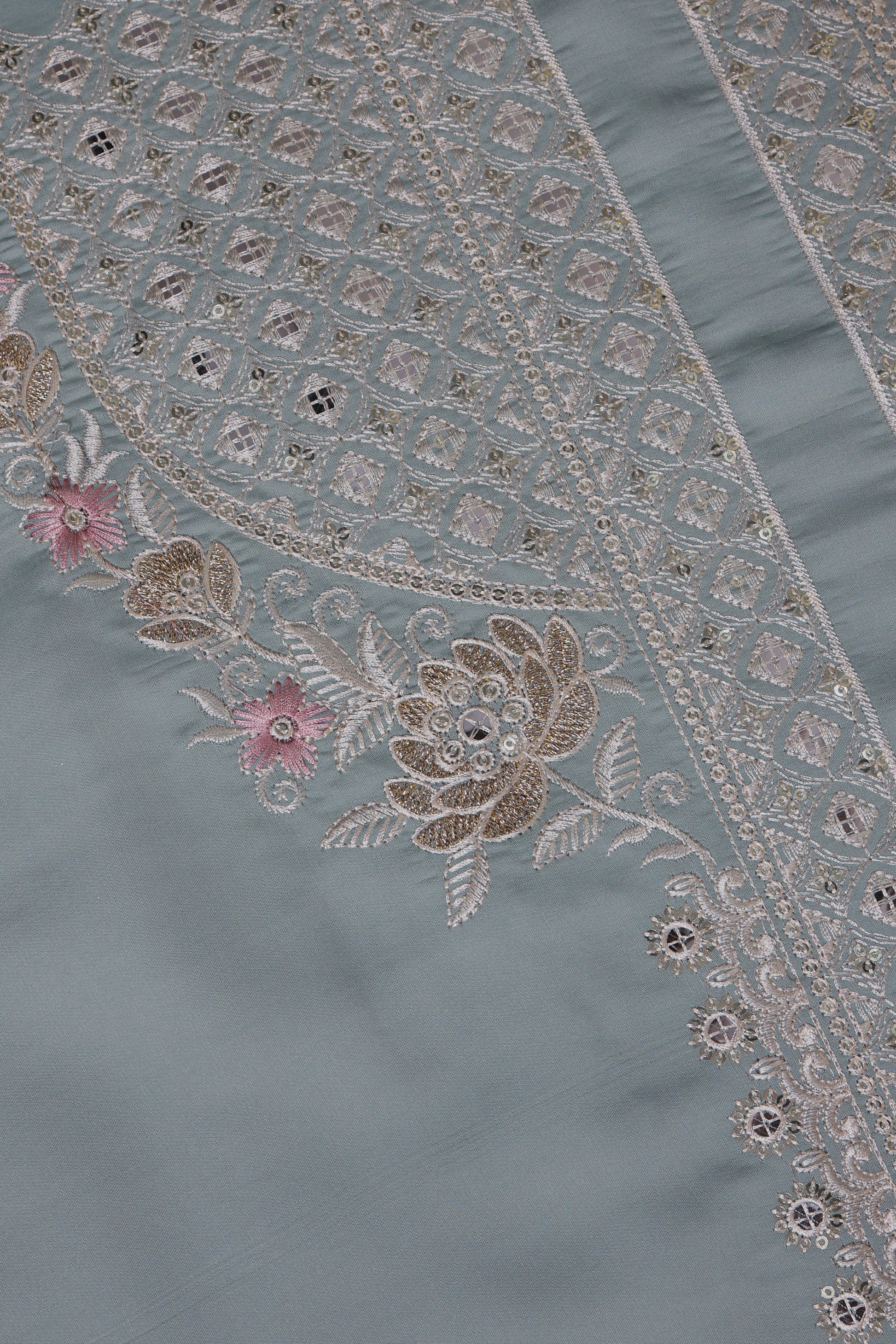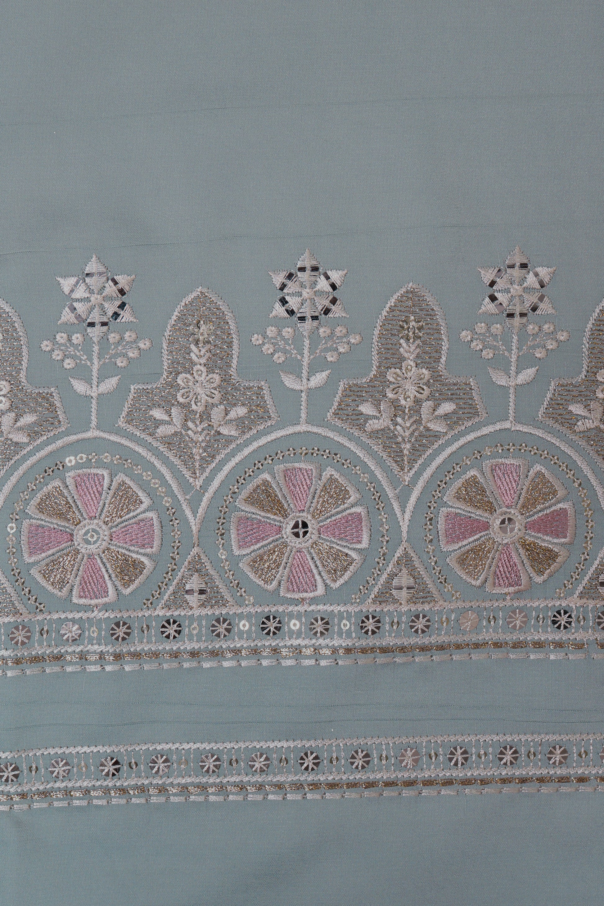 Unstitched Suit with Intricate White & Pink Thread Embroidery – Elegant Neck & Border Design